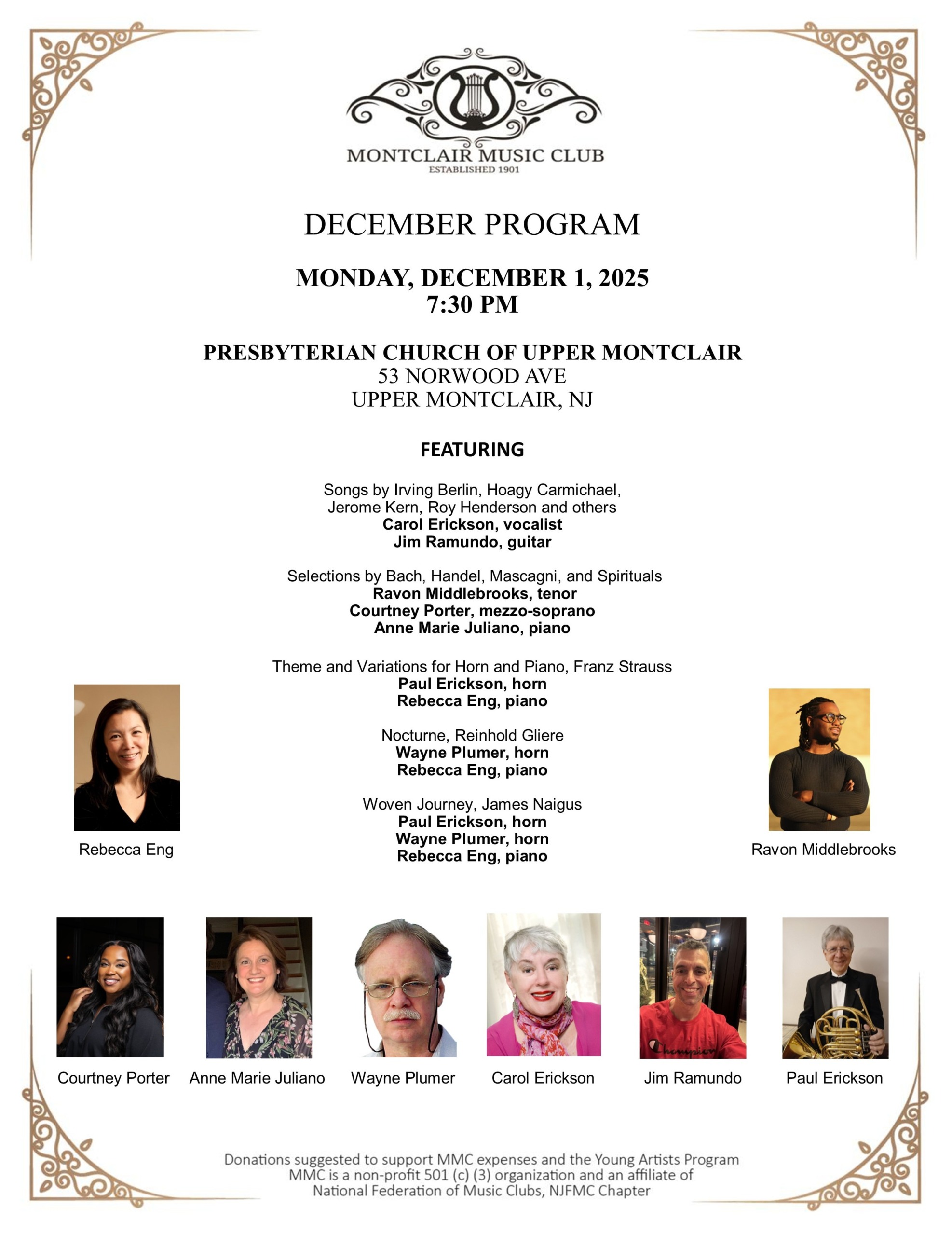 Program for Monday, December 1, 2025, at 7:30 pm