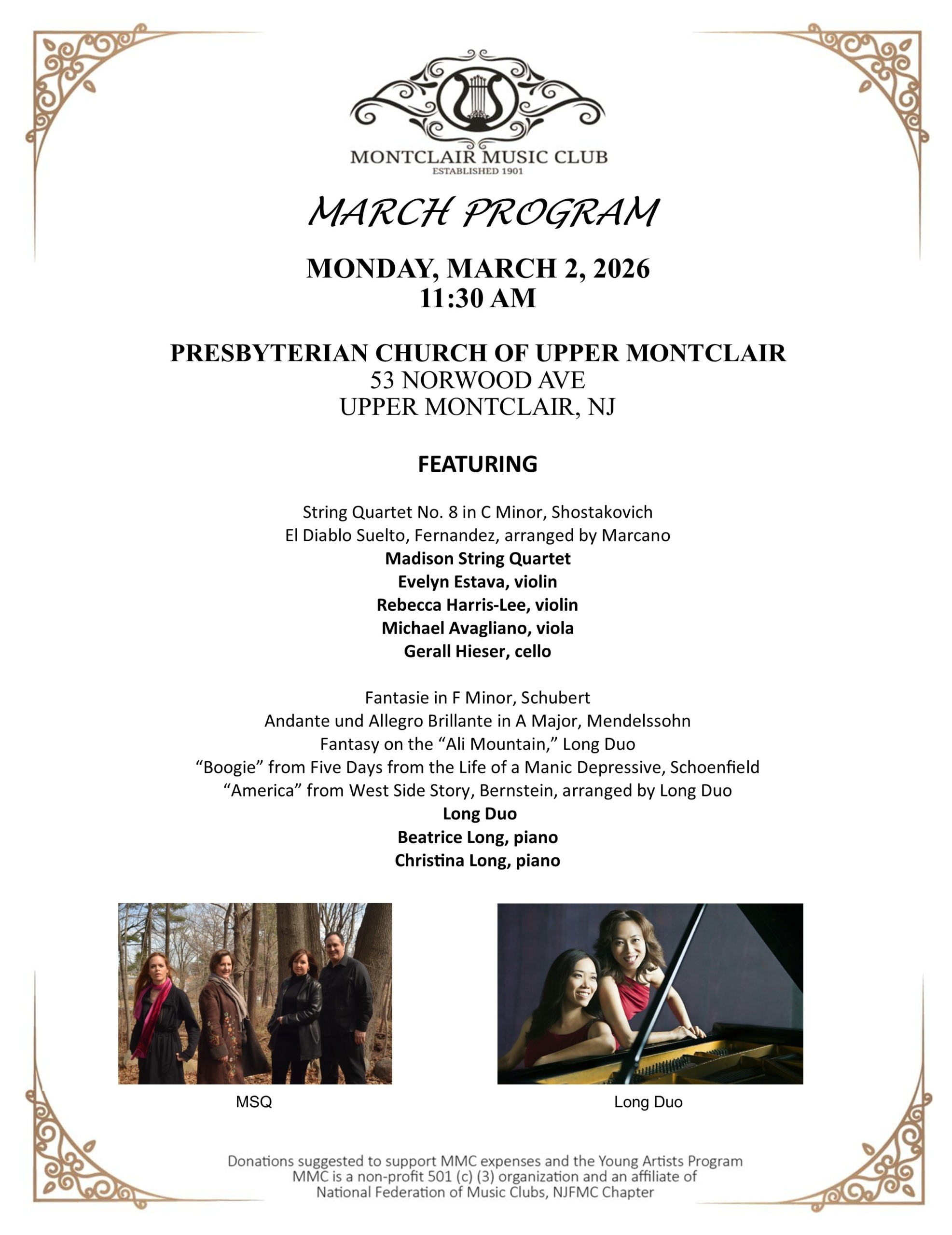 Program for Monday, December 1, 2025, at 7:30 pm